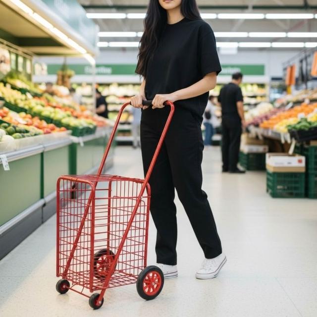 和買居家 四輪摺疊購物車 銀灰色菜籃車(摺疊好收納 購物逛街買菜好幫手)