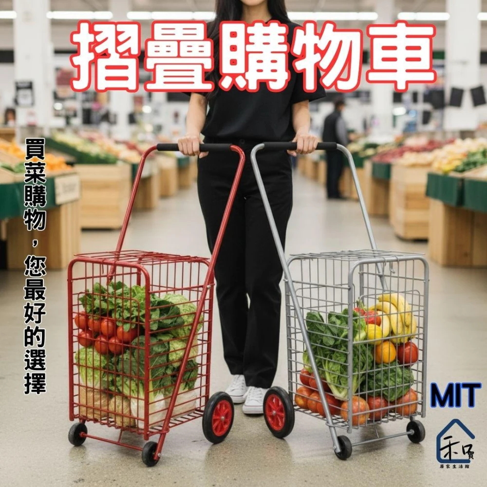 和買居家 四輪摺疊購物車 銀灰色菜籃車(摺疊好收納 購物逛街買菜好幫手)