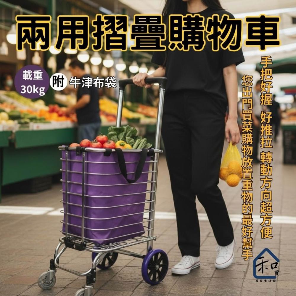 和買居家 兩用購物車 買菜車 購物車 拉貨車(摺疊購物車 摺疊買菜車 多用途 四輪購物車 寬手把 購物袋車)