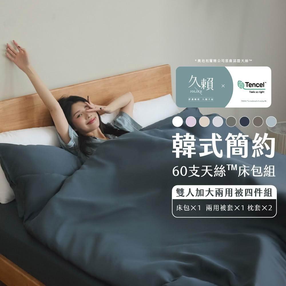 久賴MIT 韓式簡約60支天絲 雙人加大兩用被四件床包組 台灣製 100%萊賽爾天絲 涼感
