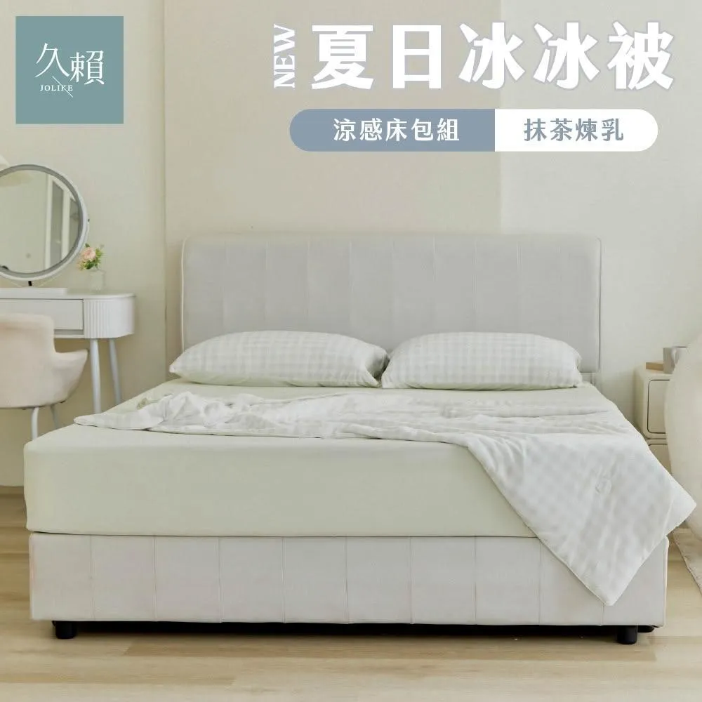 久賴2025 夏日冰冰被床包四件組-抹茶煉乳(涼被床包 涼感被床包 冰涼被床包 床罩 抹茶煉乳冰冰被)