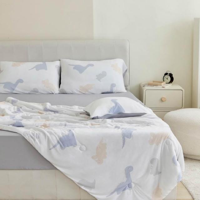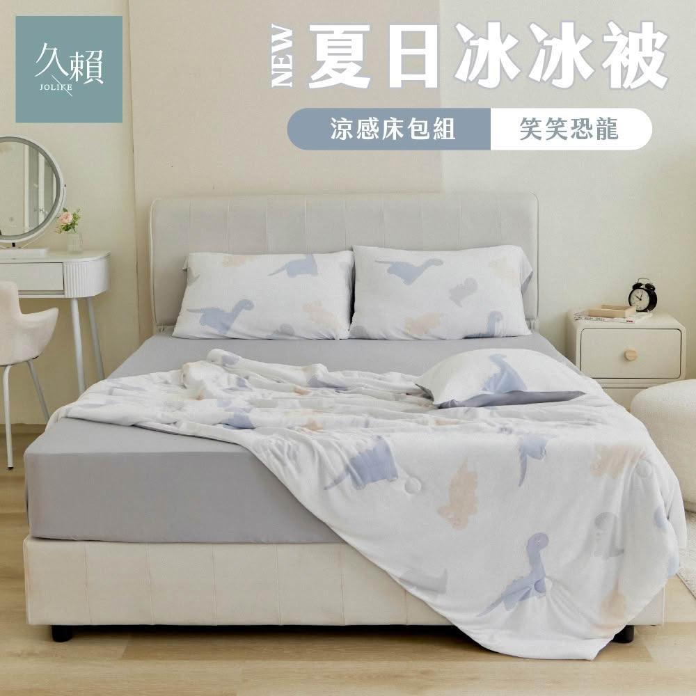 久賴夏日冰冰被床包枕套三件組-笑笑恐龍(涼被床包 涼感被床包 冰涼被床包 床罩 笑笑恐龍冰冰被)