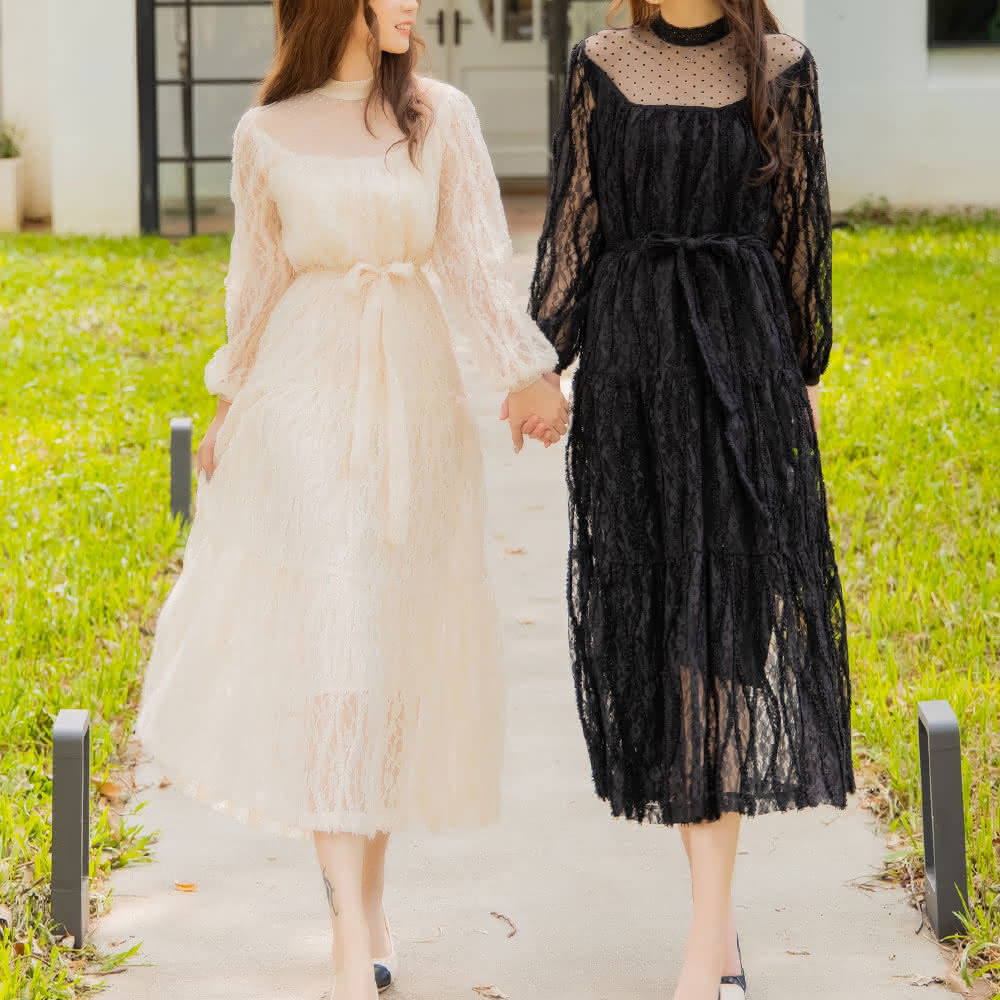 N147現貨 超夢幻透膚網紗浪漫蕾絲長洋裝《650》韓國女裝/現貨商品/預購