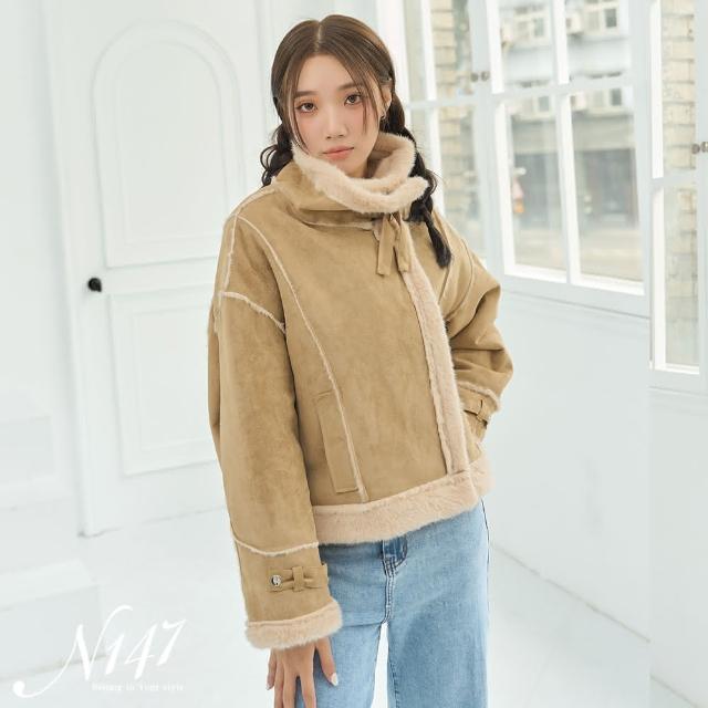 N147高領/大翻領寬鬆麂皮毛毛短版外套《Y3163》戀奶茶