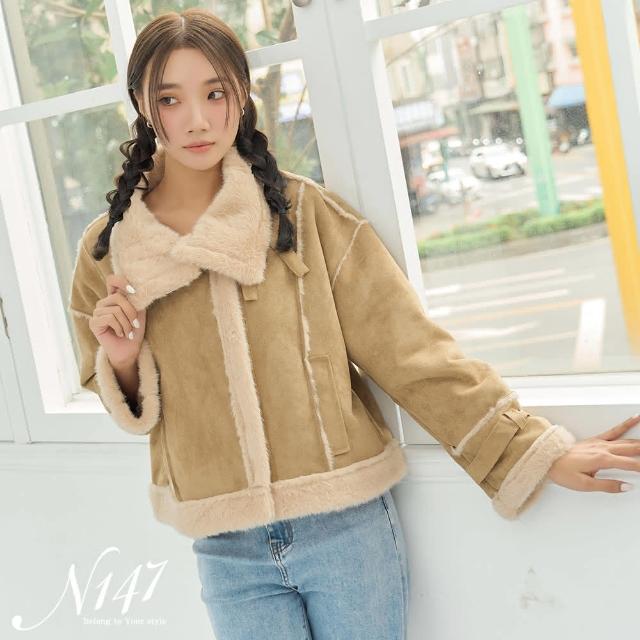 N147高領/大翻領寬鬆麂皮毛毛短版外套《Y3163》戀奶茶