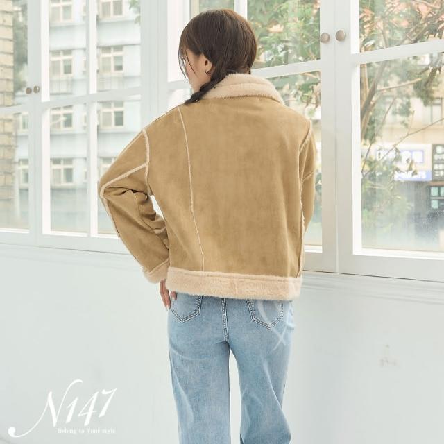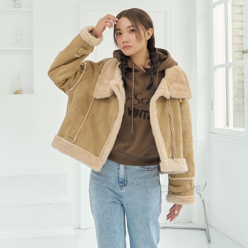 N147高領/大翻領寬鬆麂皮毛毛短版外套《Y3163》戀奶茶