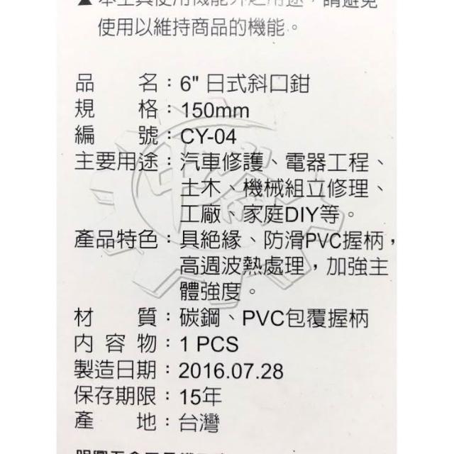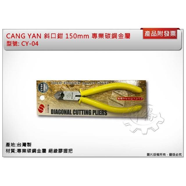 台灣製 CANG YAN 斜口鉗 150mm 專業碳鋼金屬 CY-04 中崙五金