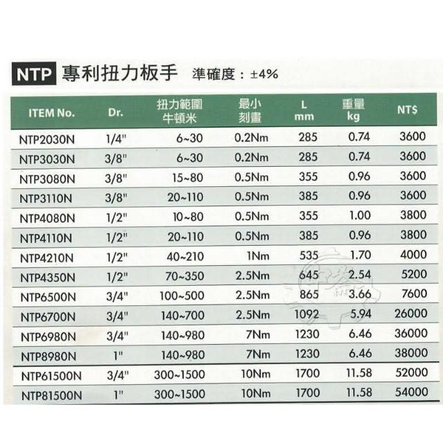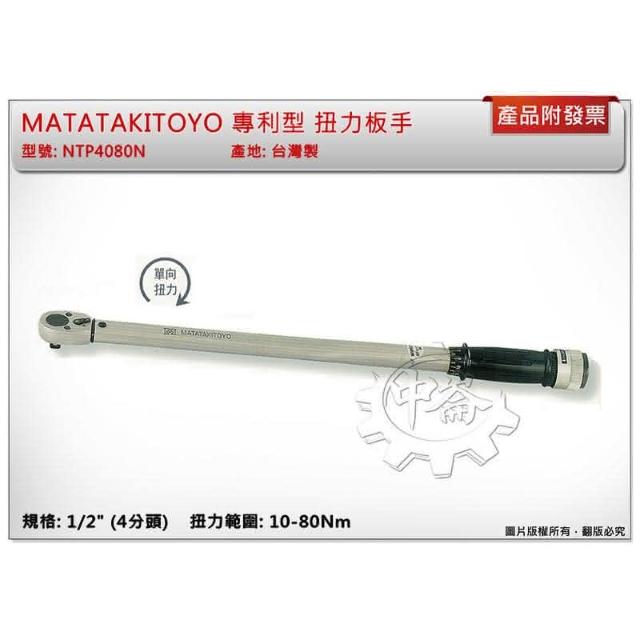4分頭 10-80Nm 台灣製 MATATAKITOYO 專利型 扭力板手 扭力板桿NTP4080N 中崙五金