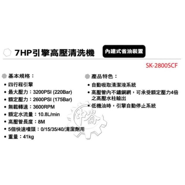 SHIN KOMI 型鋼力7HP 引擎高壓清洗機 SK-2800SCF SK-2800 洗車機 中崙五金