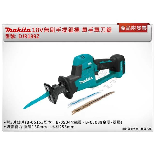 MAKITA 牧田18V充電式無刷手提鋸機 單手軍刀鋸 DJR189Z DJR189 單機+選項 中崙五金