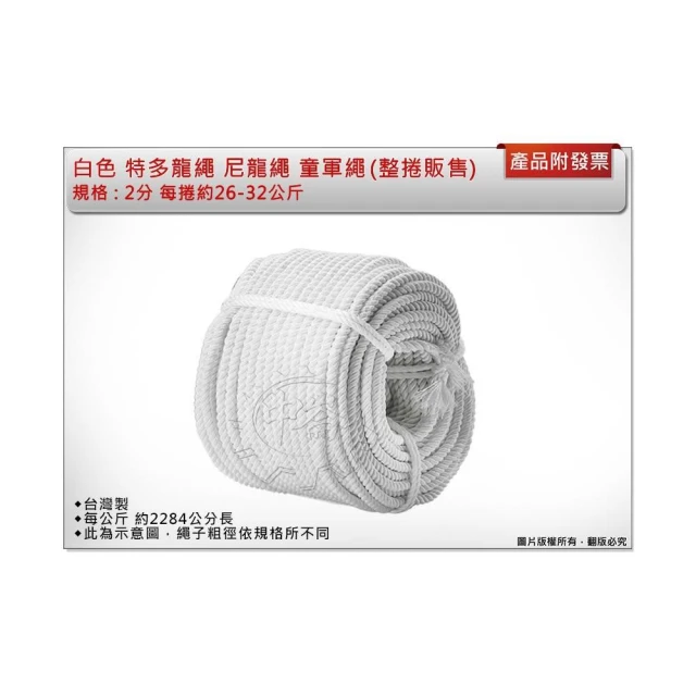 2分 每捲約26-32公斤 白色 特多龍繩 尼龍繩 童軍繩 台灣製(整捲販售不零售) 中崙五金
