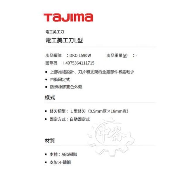 Tajima 田島DKC-L590W 電工L型美工刀 切割刀 側邊開關 中崙五金
