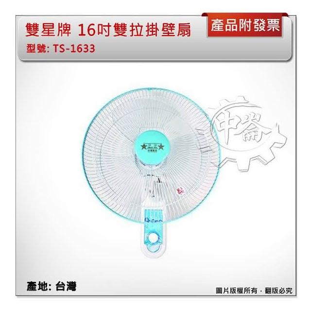 雙星牌16吋 雙拉掛壁扇 電扇 電風扇 壁扇 可調 雙拉式開關 TS-1633 台灣製 中崙五金