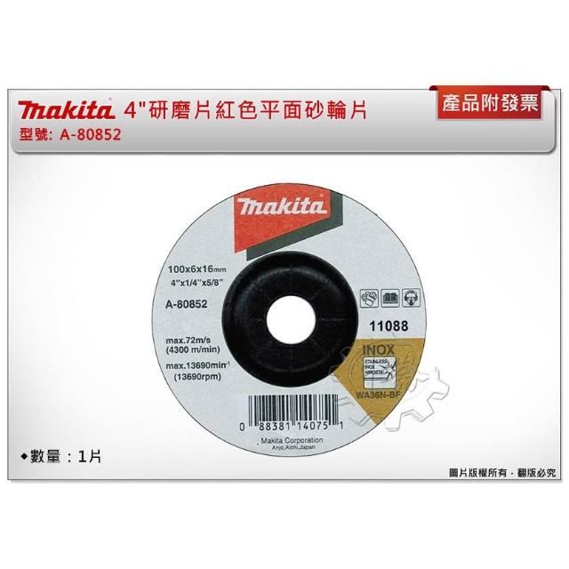 MAKITA 牧田紅色平面砂輪片一片 研磨片 4 - 厚度6MM A-80852 中崙五金