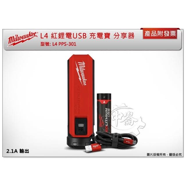 Milwaukee 美沃奇L4 PPS-301 紅鋰電USB L4B3電池 充電寶 分享器 L4PPS-301 中崙五金