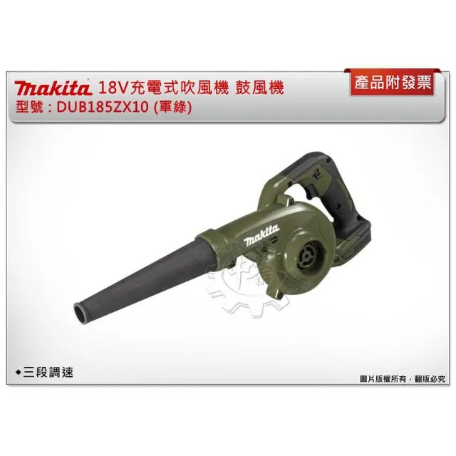 MAKITA 牧田18V充電式吹風機 DUB185ZX1O(軍綠色) DUB185Z DUB185三段調速鼓風機 中崙五金