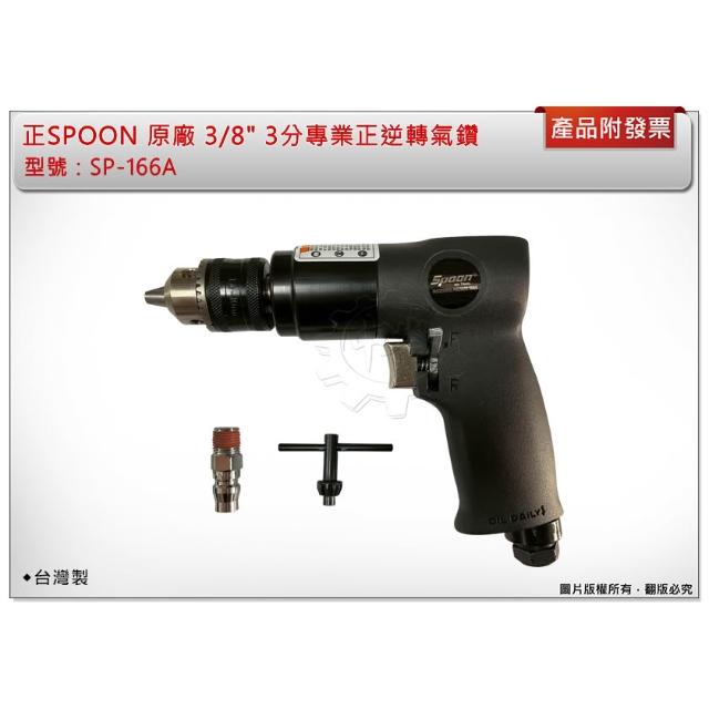 正SPOON 原廠 3/8 3分專業正逆轉氣鑽 SP-166A 槍型氣動鑽 強力型 台灣製 中崙五金