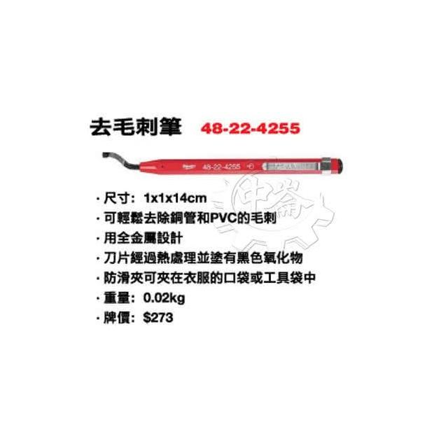 Milwaukee 美沃奇去毛棘筆 去毛邊筆 毛刺刮刀 適用: pvc管 銅管 48-22-4255 中崙五金