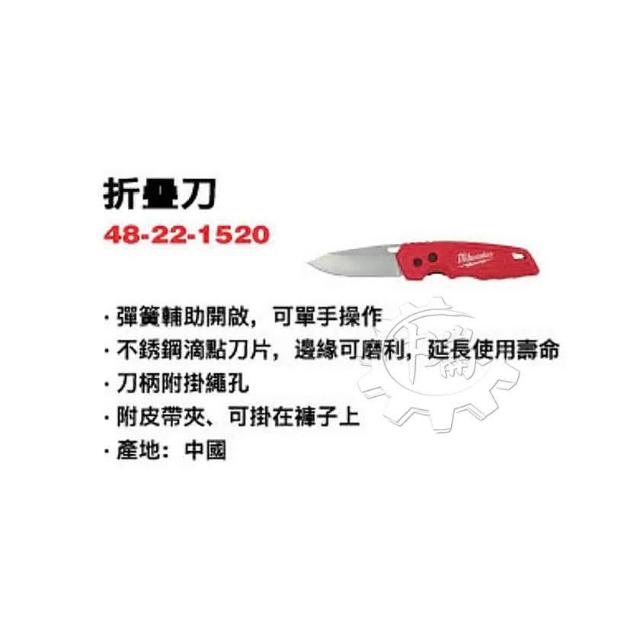 Milwaukee 美沃奇FASTBACK™ 折疊式小刀 48-22-1520 不銹鋼折疊刀 中崙五金