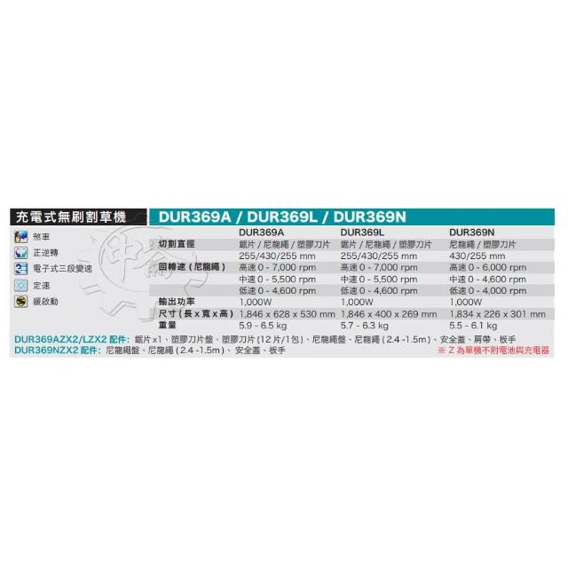 MAKITA 牧田36V充電式無刷高扭力割草機 U型手把 DUR369AZX2 DUR369 單機+選項 中崙五金
