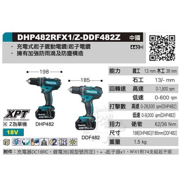MAKITA 牧田18V雙機組 DLX2243X1DTD149起子機 +DHP482震動電鑽) (含充電器 電動螺絲起子機 中崙五金