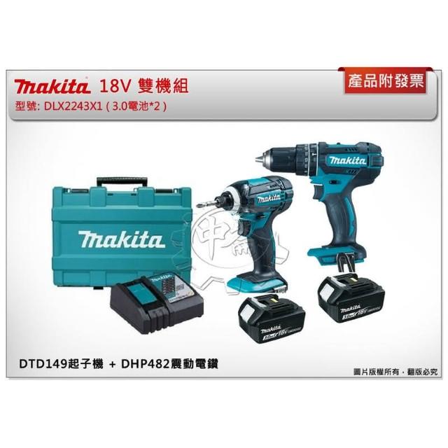 MAKITA 牧田18V雙機組 DLX2243X1DTD149起子機 +DHP482震動電鑽) (含充電器 電動螺絲起子機 中崙五金
