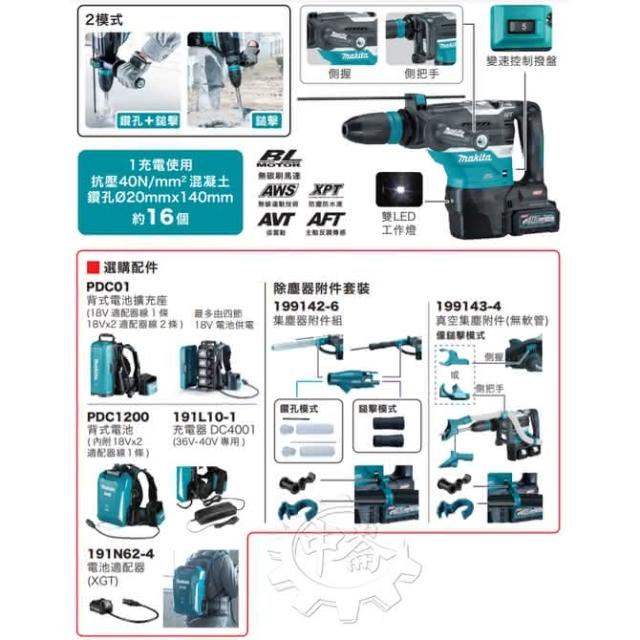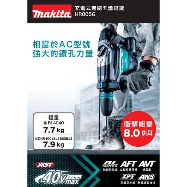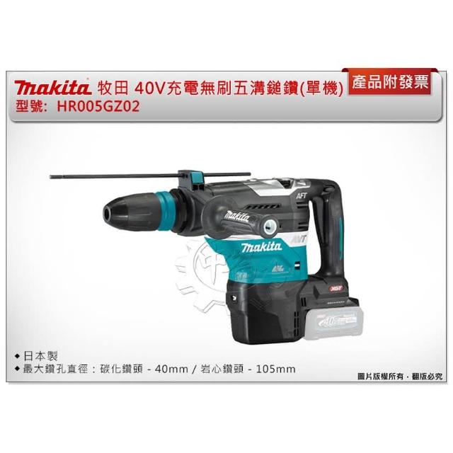 MAKITA 牧田日本製40V充電式無刷五溝鎚鑽 HR005GZ02 HR005 兩用夾頭 40MM 中崙五金