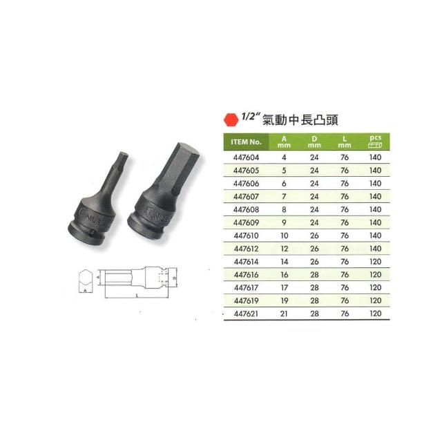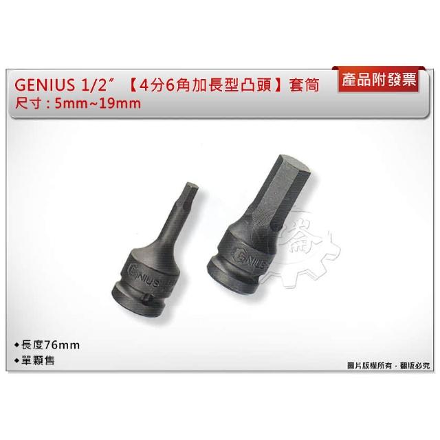Genius台灣製 1/2 4分6角加長型凸頭 電動套筒組 凸六角套筒 (單顆售 5/6/8/10/12/14/17mm) 中崙五金