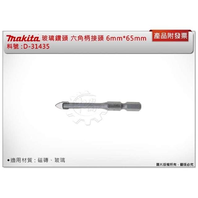 MAKITA 牧田玻璃鑽頭 6mm*65mm D-31435 六角柄 快速接鑽尾 適用玻璃、磁磚 中崙五金