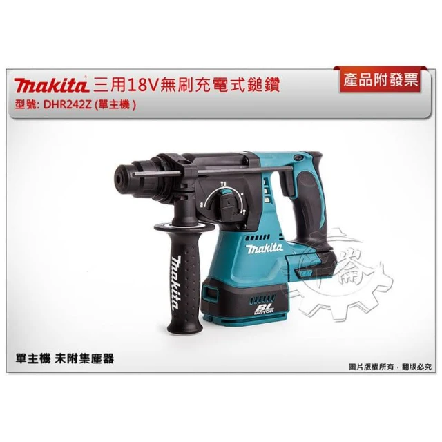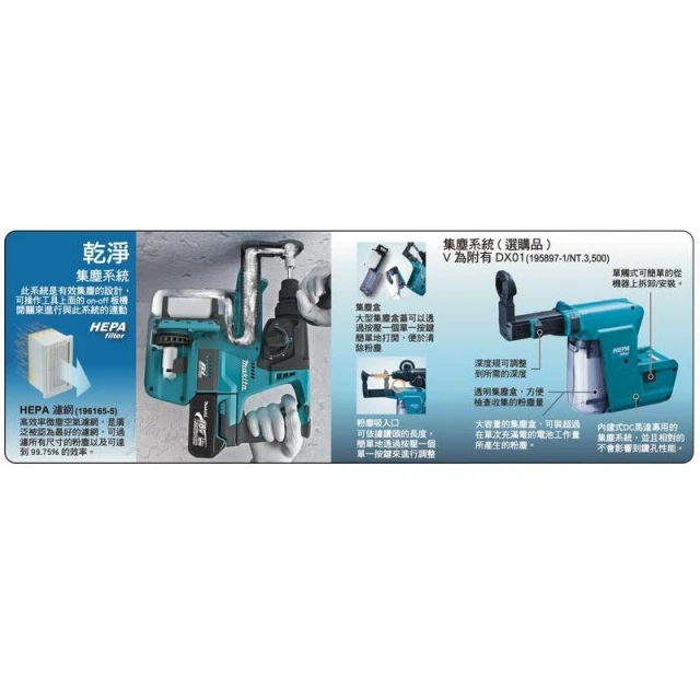 MAKITA 牧田牧田 DHR242RGEW 18V三用充電式鎚鑽 DHR242 附集塵器DX06 中崙五金