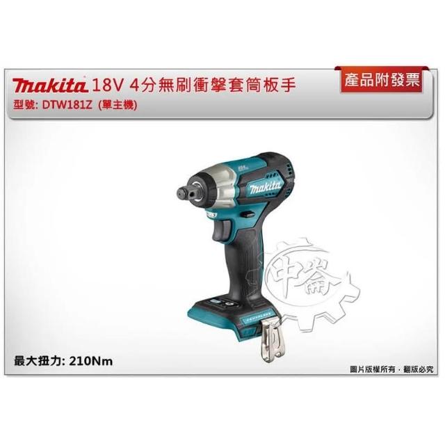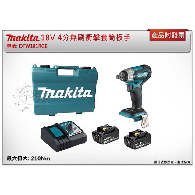 MAKITA 牧田18V 4分無刷衝搫套筒板手 DTW181RGE DTW181Z 無刷板手機 DTW181 單機+選項 中崙五金