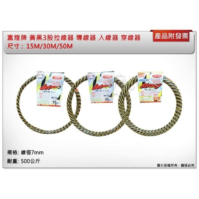 富煌牌 OPT 15米 / 30米 / 50米 黃黑3股拉線器 黑黃虎紋線 導線器 穿線器 通管條 中崙五金