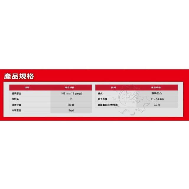 Milwaukee 美沃奇18V無碳刷F釘槍 M18 FN18GS M18 FN18GS-0X 中崙五金
