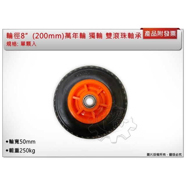 8吋 200mm 萬年輪雙滾珠軸承 8吋獨輪 輪寬50mm 免打氣輪 硬輪 載重250kg 中崙五金