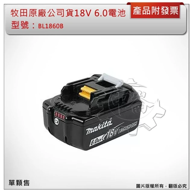 MAKITA 牧田18V 6.0AH鋰電池BL1860B 附電量顯示 原廠保固 中崙五金