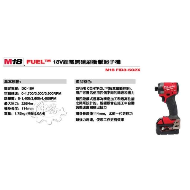 Milwaukee 美沃奇18V無碳刷衝擊起子機 M18 FID3 M18FID3單機+選項 M18 FID3-502X 電鑽起子機 中崙五金