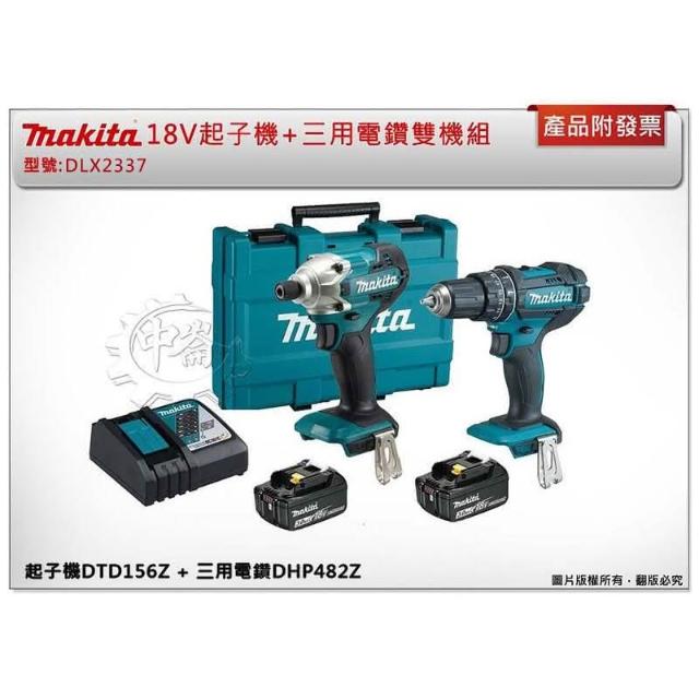 MAKITA 牧田18V雙機組 DLX2337 起子機DTD156Z + 三用電鑽DHP482Z 電動螺絲起子機 電鑽起子機 中崙五金