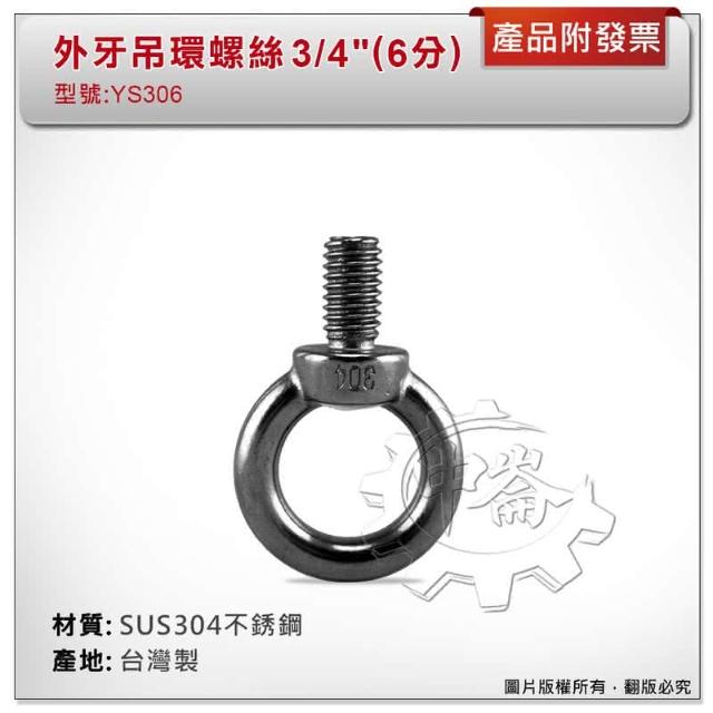 3/4 6分 外牙吊環螺絲 材質: SUS304不銹鋼 型號 :YS306 可配合內牙壁虎 中崙五金