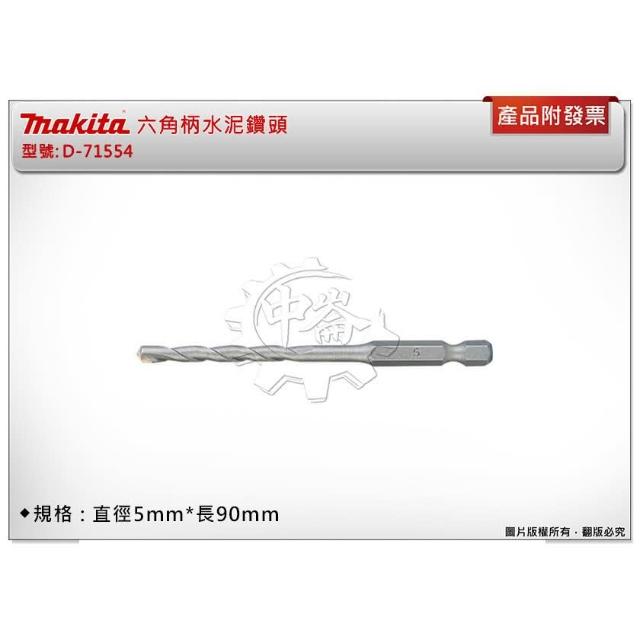 MAKITA 牧田5mm*長90mm 六角柄水泥鑽頭 D-71554 同D-31485起子機專用 石工用鑽頭 電動螺絲起子機 中崙五金