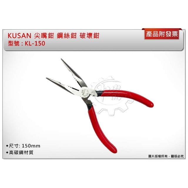 KUSAN 尖嘴鉗 KL-150(附壓著功能)鋼絲鉗 破壞鉗 老虎鉗 高碳鋼材質 中崙五金