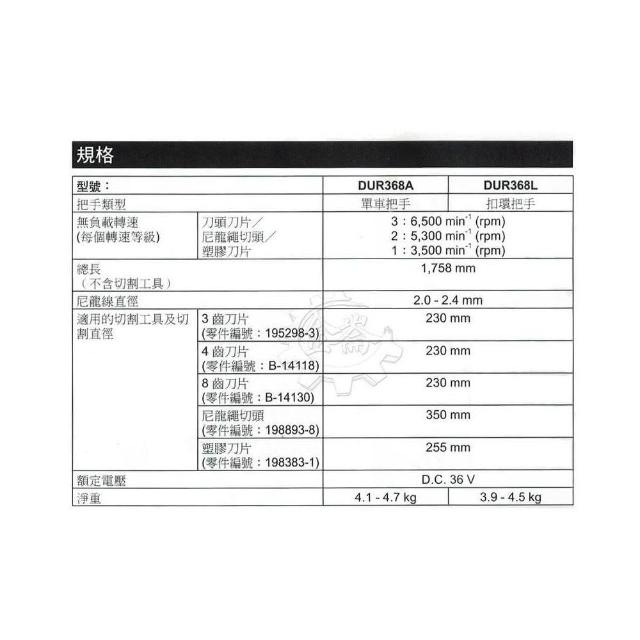 MAKITA 牧田36V無刷割草機 DUR368AZ DUR368APG2 單機+選項 中崙五金