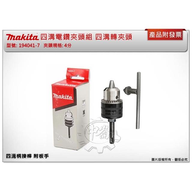 MAKITA 牧田四溝電鑽夾頭組 4分規格 四溝轉夾頭 四溝柄接桿 附板手 194041-7 電動螺絲起子機 電鑽起子機 中崙五金