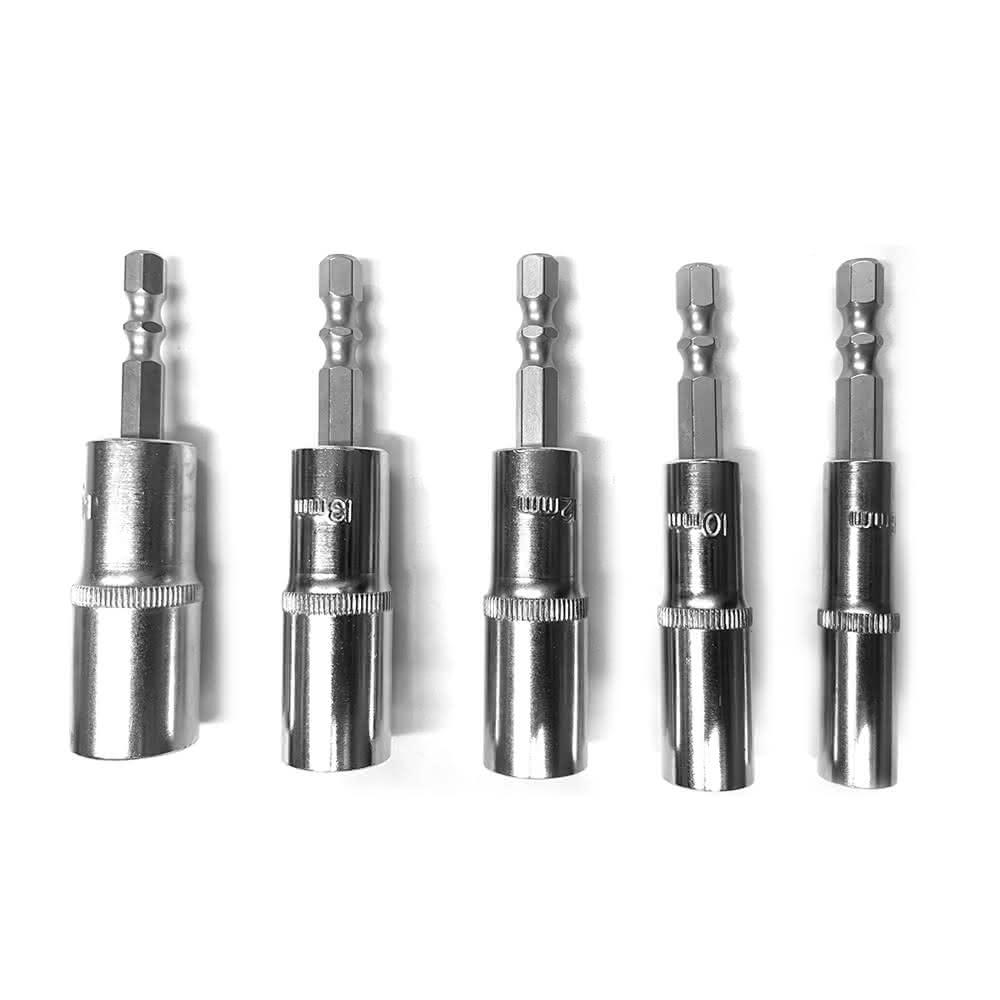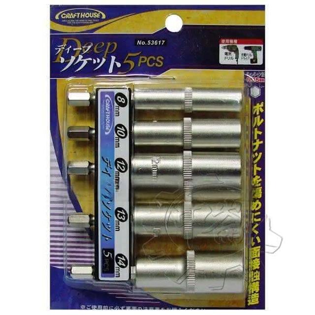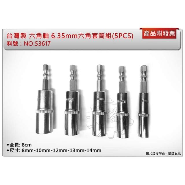 台灣製 六角軸 6.35mm無磁深孔六角套筒組5PCS 充電起子機用 5支組 NO:53617 中崙五金