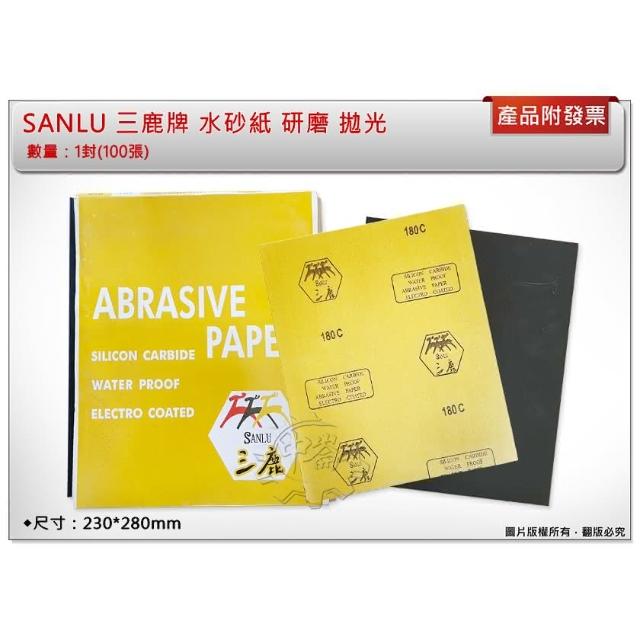 SANLU 三鹿牌 水砂紙 100番 2000番 1封100張 研磨 拋光 耐水研磨紙 中崙五金