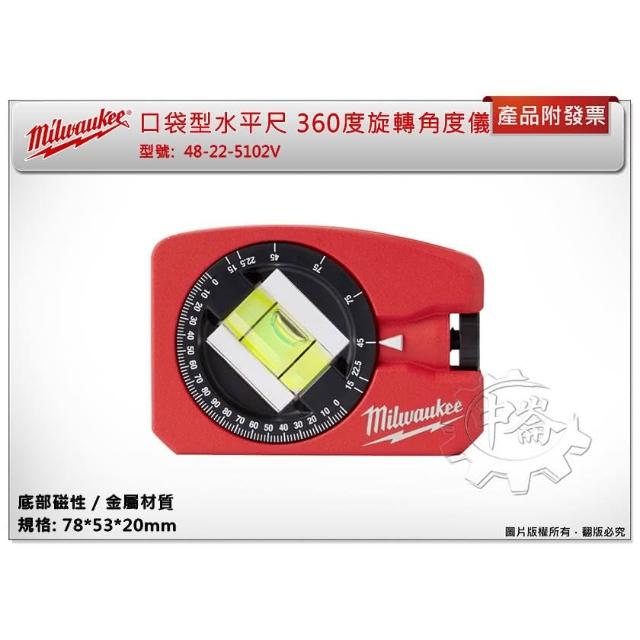 Milwaukee 美沃奇口袋型水平尺 48-22-5102V 360度旋轉角度儀 底部磁性48-22-5102 中崙五金