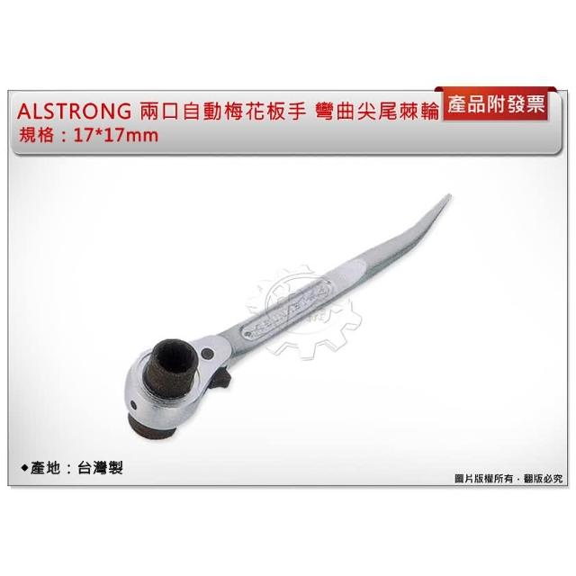 ALSTRONG台灣製 17*17mm彎曲款 兩口自動梅花板手 建築板手 彎曲尖尾棘輪板手 中崙五金
