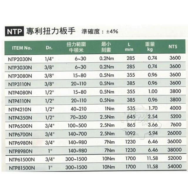 6分頭 100-500Nm MATATAKITOYO 專利型 扭力板手 扭力板桿 NTP6500N 中崙五金