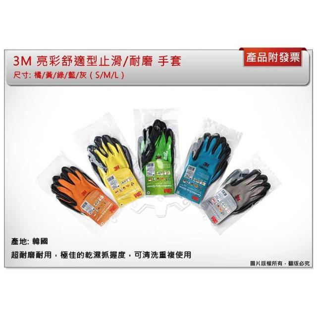 3M亮彩舒適型(灰色- XL/L/ M/ S)止滑/耐磨 手套 3M手套 防滑 工作手套 韓國製 中崙五金