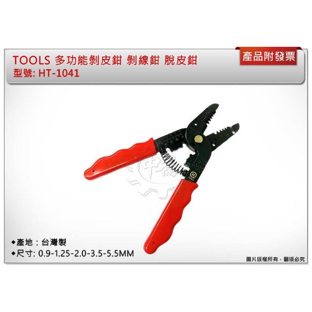 TOOLS專業 多功能剝皮鉗 剝線鉗 脫皮鉗 五種尺寸 台灣製 HT-1041 中崙五金