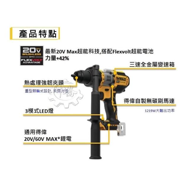 DEWALT 得偉20V無碳刷強力震動電鑽調扭起子機 DCD999B DCD999 單機+選項 電動螺絲起子機 電鑽起子機 中崙五金